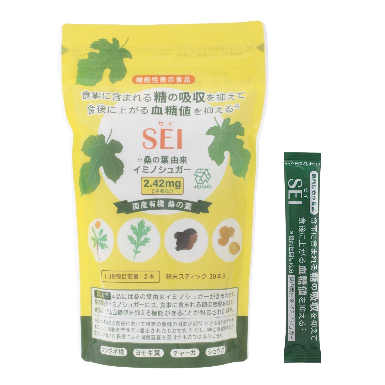 ※機能性関与成分として、桑の葉由来イミノシュガーが2.42mg(2本あたり)含まれています。